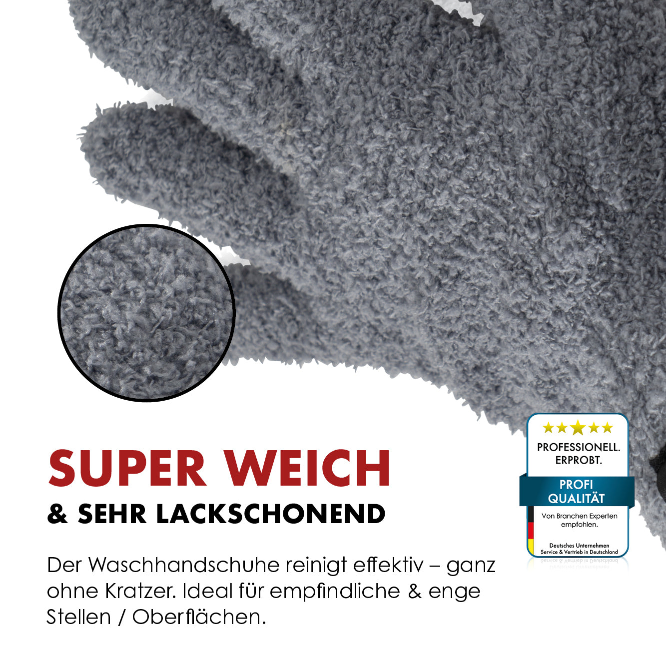 La suave microfibra garantiza una limpieza sin arañazos de superficies delicadas como pintura, cristal, plástico o vinilo. Gracias al material ligero, los guantes ofrecen una sensibilidad intensa para cada movimiento y cada superficie.