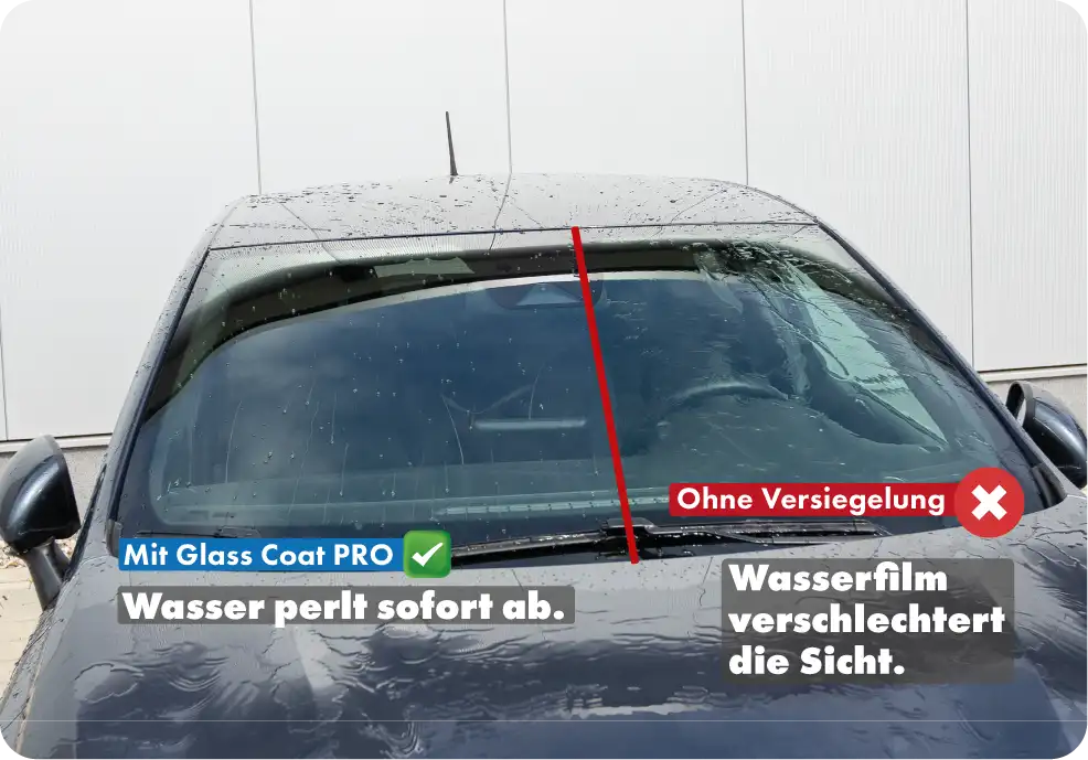 Glass Coat PRO es el sellado perfecto para quienes no quieren hacer concesiones. Su fórmula innovadora crea una superficie de cristal extremadamente lisa con un efecto perlado visible al instante, ideal para parabrisas, ventanillas laterales y elementos de vidrio de todo tipo.